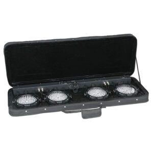 Sagitter Led Kit 7 Kit led 4 proiettori led 7x10W RGBW / FC ,Sagitter Led Kit 7 può vantare una delle più vaste scelte quando si parla di sistemi led kit “plug & play” pronti all’uso. La serie Led Kit è composta da un set di cambia colori led portatile adatto a qualsiasi utente, esperto e non. Un comodo supporto 3 piedi (in dotazione) sorregge la barra porta fari, una pedaliera consente il controllo facilitato di tutto il sistema e due comode sacche (in dotazione) ne garantiscono un trasporto veloce e sicuro. Il secondo della serie, può contare su 4 proiettori da 7 sorgenti led ad alta potenza da 10W con tecnologia full color 4 in 1 RGBW; l’elevata potenza e l’aggiunta del colore bianco rendono unico questo kit nell’intrattenimento indoor.